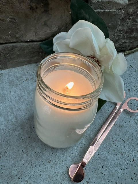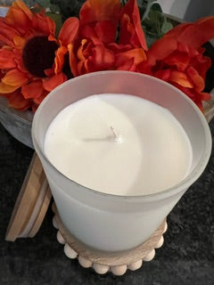 10 ounce hand poured soy candle in frosted jar with bamboo lid